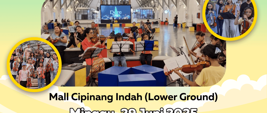 Workshop Biola & Latihan Bersama di Mall Cipinang Indah – Gratis untuk Semua Usia! Ingin belajar biola atau ingin bermain bersama musisi lainnya? Jangan lewatkan Workshop Biola & Latihan Bersama yang akan diadakan pada Minggu, 29 Juni 2025, pukul 15.00–18.00 WIB di Mall Cipinang Indah (Lower Ground), Jakarta Timur. Acara ini GRATIS dan terbuka untuk semua usia, baik pemula maupun yang sudah berpengalaman. Kami juga menyediakan biola gratis untuk dicoba selama workshop! Bersama komunitas biola yang ramah dan suportif, Anda bisa belajar teknik dasar, bermain lagu bersama, dan memperluas jejaring sesama pecinta musik. 🎻 Highlight acara: • Workshop teknik dasar dan bermain bersama • Tersedia biola pinjaman bagi pemula • Dipandu oleh mentor berpengalaman • Suasana santai dan kekeluargaan 📍 Lokasi: Mall Cipinang Indah (LG), Jl. Raya Kalimalang, Jakarta Timur 📱 Info & Pendaftaran: Hubungi Fredy di 0812-9015-1412